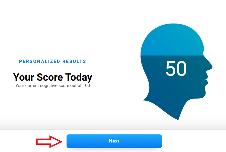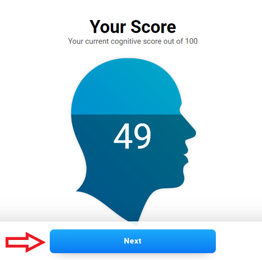 By clicking the Next button, the patient will see a score for each cognitive ability assessed during the test. Scroll to the bottom of the page to see all scores.