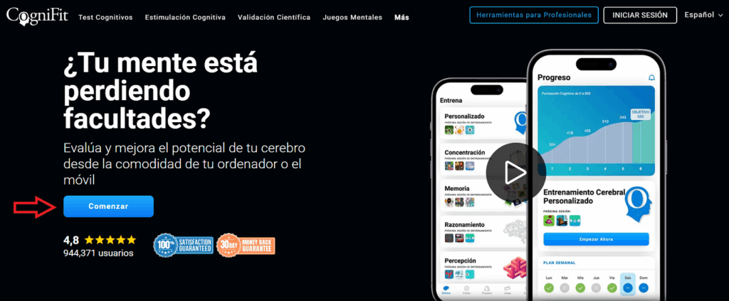 Una vez completado el registro, accederás a tu nueva página de inicio de CogniFit. ¡Enhorabuena, ya estás registrado!