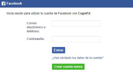 Para inscribirse en CogniFit utilizando tu cuenta de Facebook, selecciona el botón con el ícono de Facebook.