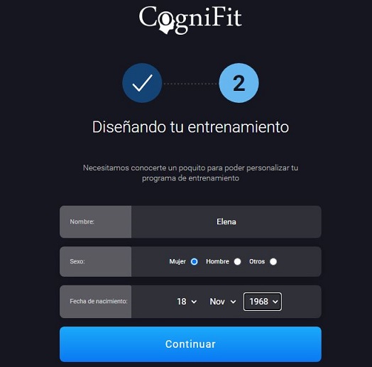 Cuando completes tu dirección de correo electrónico, asegúrate de que es una dirección de correo electrónico válida, ya que se te enviará información importante sobre tu cuenta de CogniFit. Indica tu dirección de correo electrónico válida y haz clic en Siguiente.