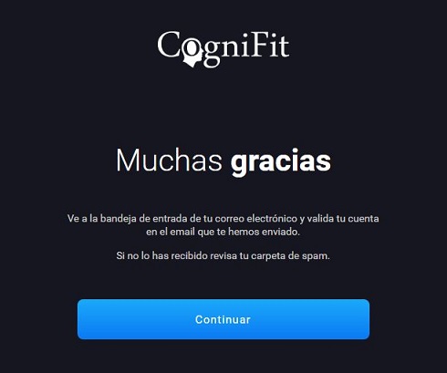 Cuando completes tu dirección de correo electrónico, asegúrate de que es una dirección de correo electrónico válida, ya que se te enviará información importante sobre tu cuenta de CogniFit.