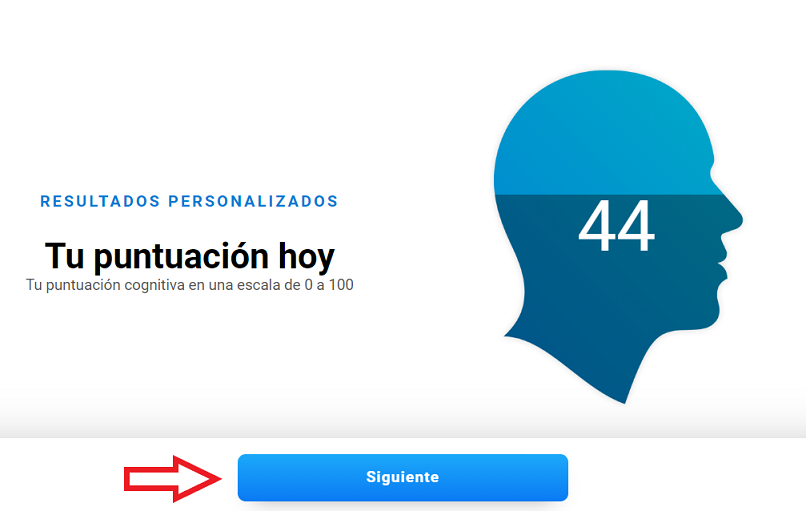 Tras completar la evaluación, el paciente verá su puntuación cognitiva general.