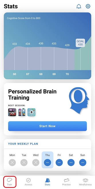 Click on the icon labeled Train in the bottom navigation bar on the app to open the Training tab.