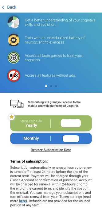 Note: You will need a CogniFit subscription to access Video Coach. For more information on how to subscribe, continue to Section 3 of this article, or read How to Subscribe to CogniFit.