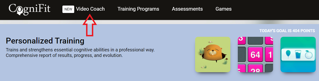 From your CogniFit account, click on the Video Coach tab in the navigation bar at the top of the screen to navigate to the Video Coach platform.