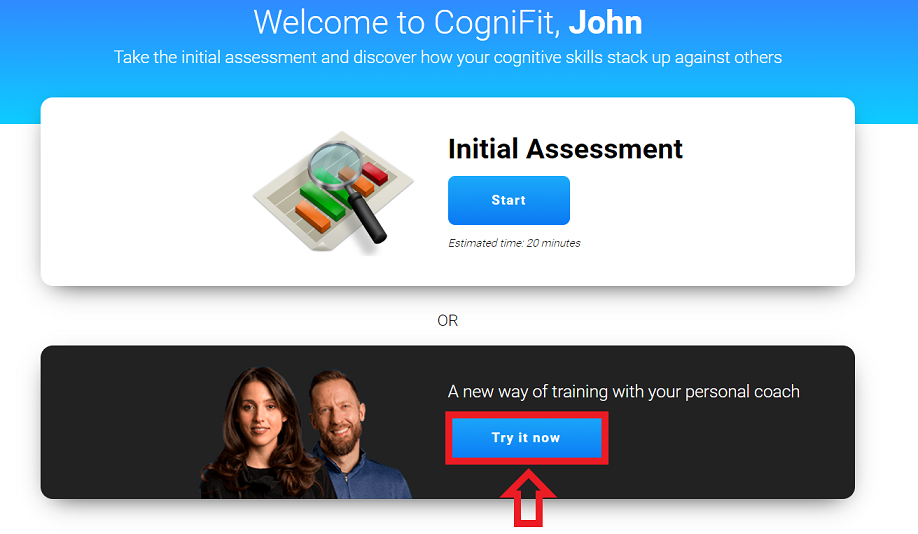 Note: If you want to train with a video coach, click “Try it now” on the homepage of your account as soon as you sign up.