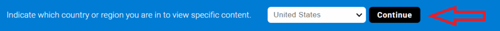 If you want to change country or region, click on the drop-down menu arrow and select the “Other country or region” option. Click the “Continue” button.