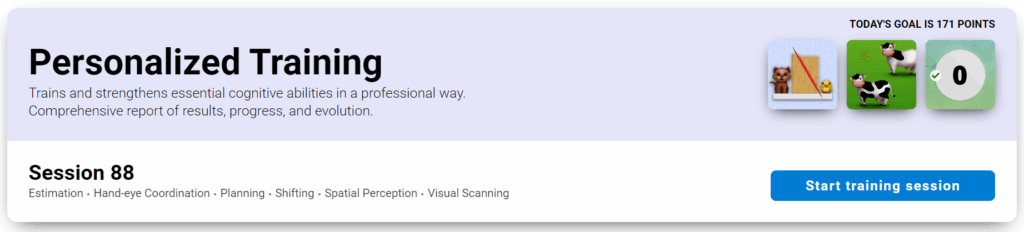 Many other brain training programs on the market don’t offer a basic assessment, but claim to be “personalized”; but it usually means that your training will include the games with the highest ratings, i.e., the games you like best. Such “personalization” is not effective because people tend to highly rate games that are easy for them, so they naturally avoid the most challenging brain games.
